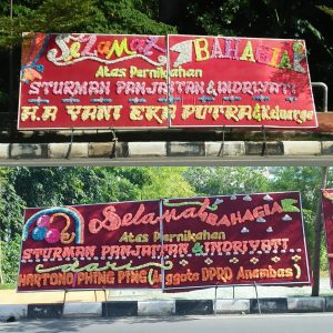 Terlihat papan bunga yang tertata rapi itu dikirim dari sejumlah tokoh masyarakat, instansi, pemerintahan, jajaran kepolisian, petinggi-petinggi negara, hingga pejabat daerah, dan masyarakat yang turut berbahagia atas resepsi ini.