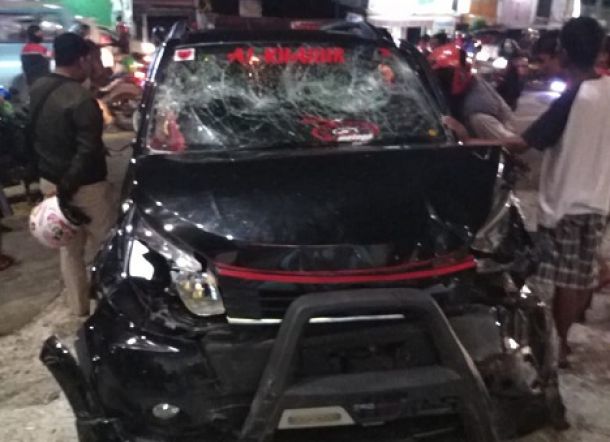 Tetapi saat berada di depan mal Nipah, Baharuddin menabrak puluhan pemotor dan dikejar oleh warga sekitar di depan mal Nipah.