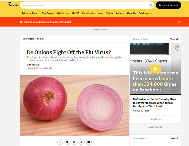 Dalam sebuah artikelnya, situs tersebut menjelaskan bahwa bawang merah mentah yang dipotong dan diletakkan di ruangan, kemudian bisa menyerap kuman dan racun, hanyalah mitos.