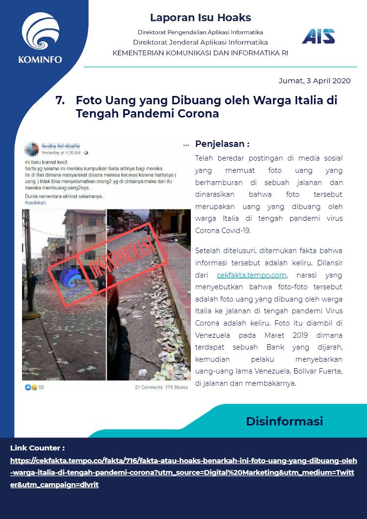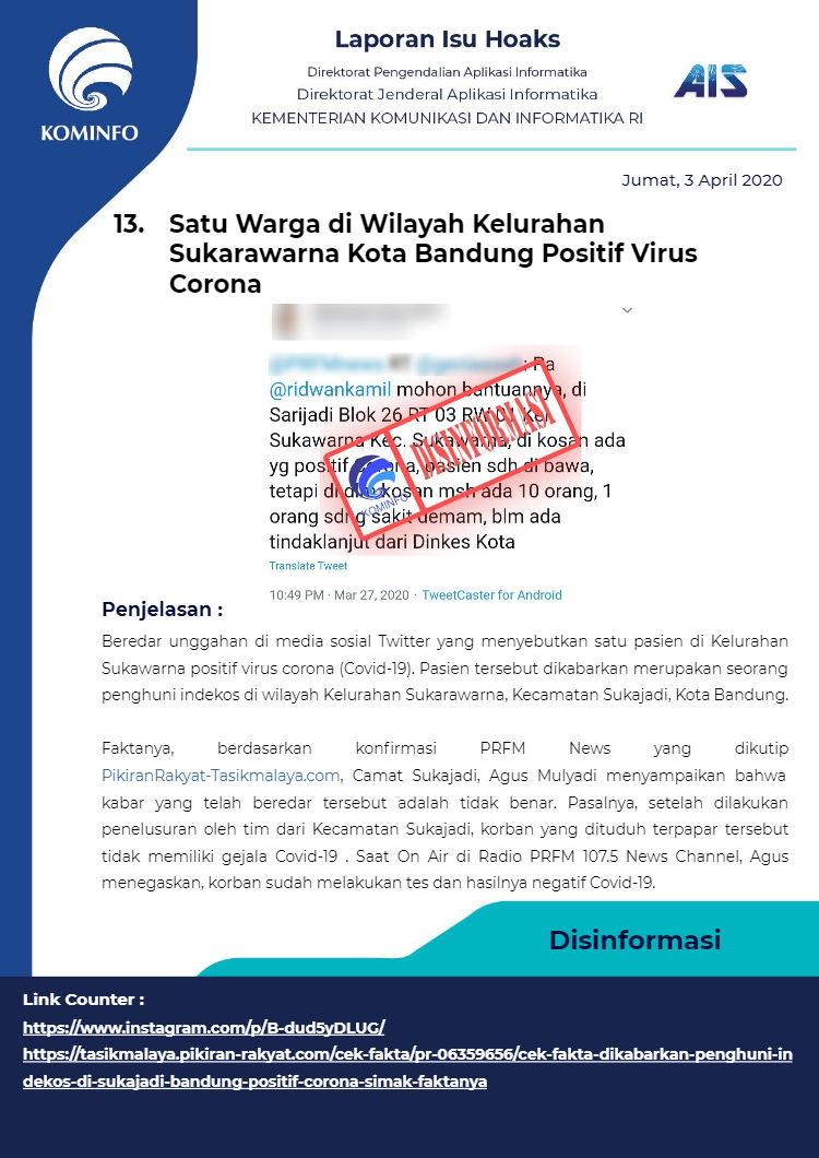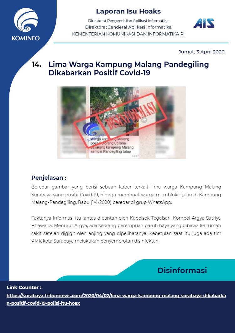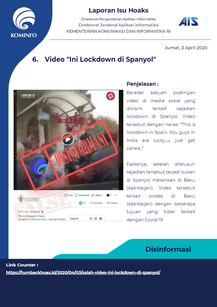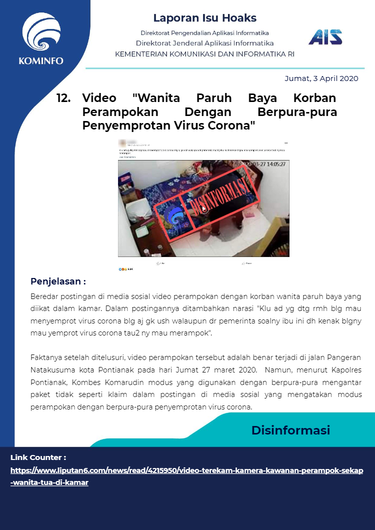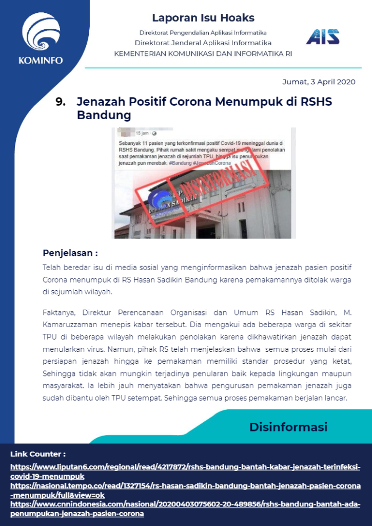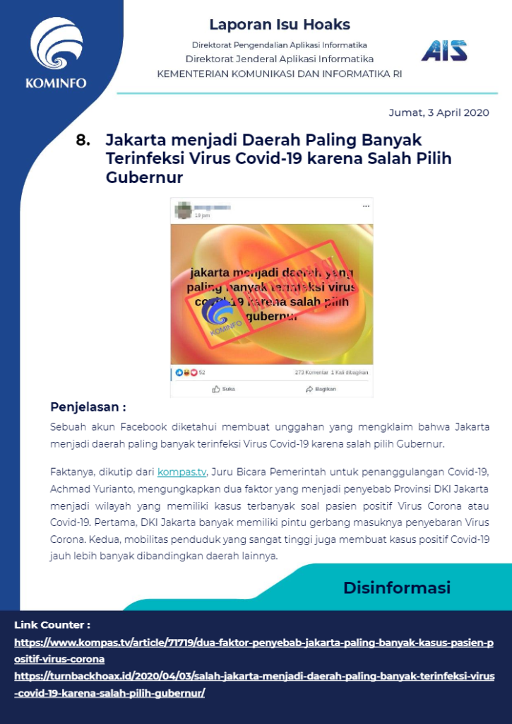 Berikut rangkuman Isu Hoaks Maret 2020 yang dipublikasikan oleh Kominfo Republik Indonesia :