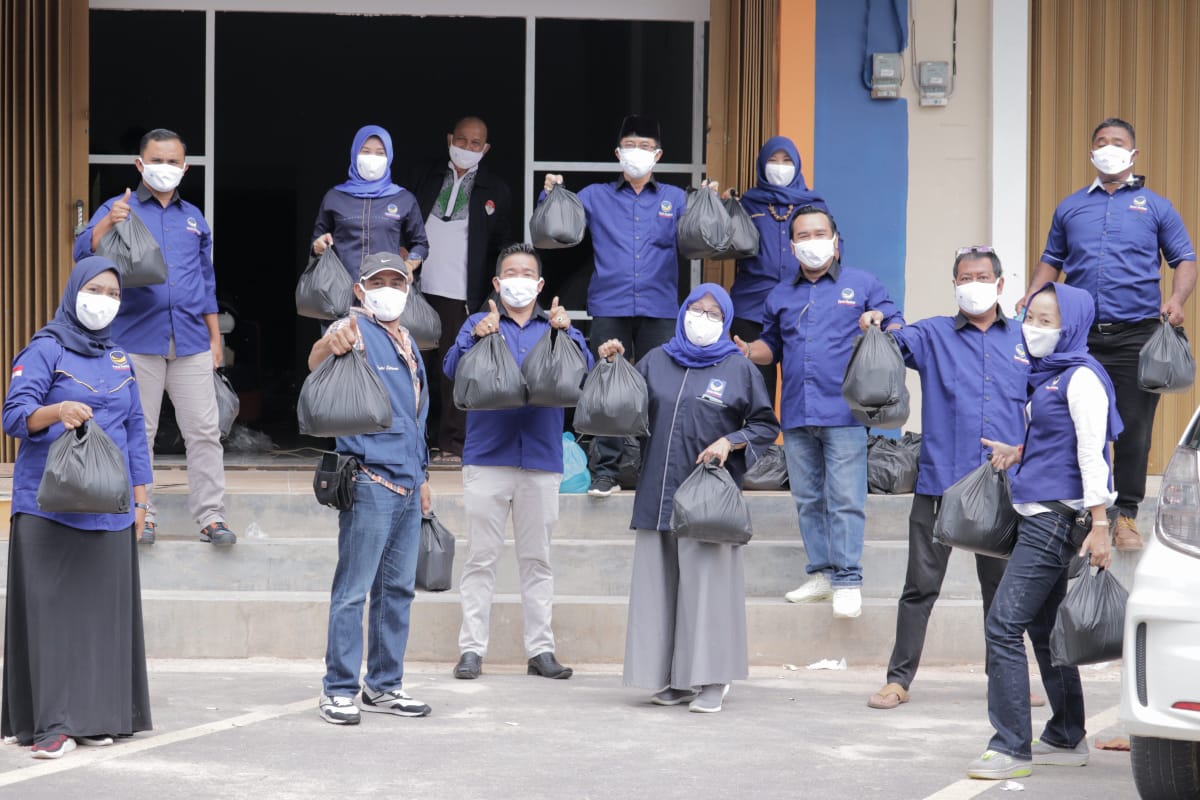 M. Nur, salah seorang pengurus partai Nasdem dalam pernyataannya, dalam pembagian ini Nasdem menyiapkan 500 Paket Sembako untuk dibagikan.
