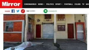 Foto dan kabar tentang jenazah korban virus corona COVID-19 yang terbaring di jalanan Ekuador telah dibantah Pemerintah Equador, kabar tersebut disebut palsu untuk menciptakan gejolak pemerintahan. Menteri Dalam Negeri Maria Paula Romo menyatakan, foto tersebut bukan di kota Guayaquil namun di Meksiko.