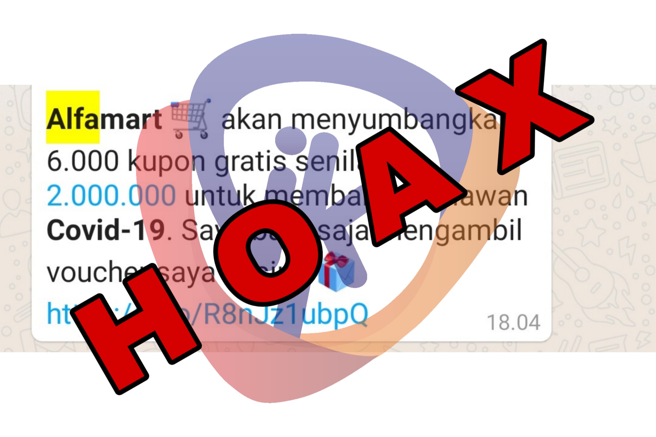 kabar Alfamart menyumbang 6 ribu kupon gratis senilai Rp 2 juta untuk melawan COVID-19 tidak benar.