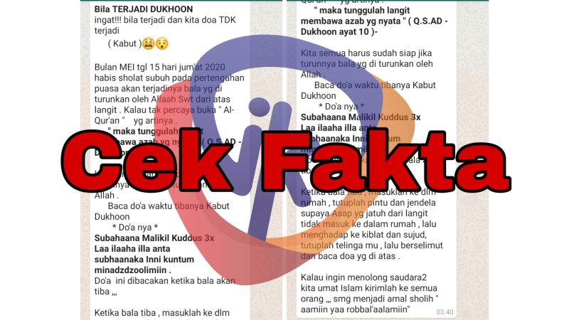 Tim cekfakta menelusuri klaim kabut tebal dan suara keras akan muncul, pada Jumat pertengahan Ramadan, menggunakan Google Search dengan kata kunci “suara keras pertengahan Ramadhan”. Penelusuran mengarah pada artikel berjudul “UAS Jelaskan Hadis Prahara 15 Ramadhan” yang dimuat situs republika.co.id, pada 2 Mei 2020.