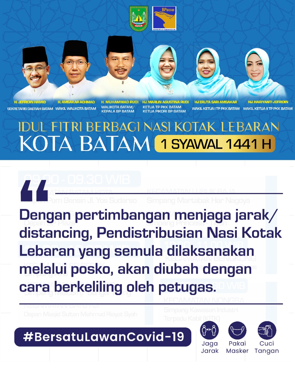 Sebelumnya diberitakan, Wali Kota sekaligus Kepala BP Batam serta Wakil Wali Kota Batam meniadakan open house di lebaran kali ini. Namun kegiatan tersebut dialihkan menjadi pembagian 15.000 paket nasi kotak Idul Fitri.