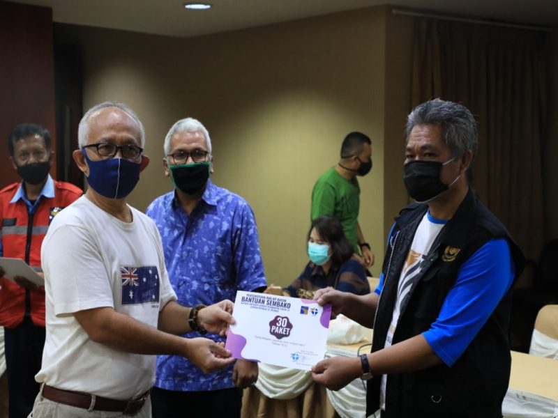 Penyerahan paket bantuan sembako ini dilakukan dengan mengikuti protokol kesehatan pencegahan pandemik Covid-19.