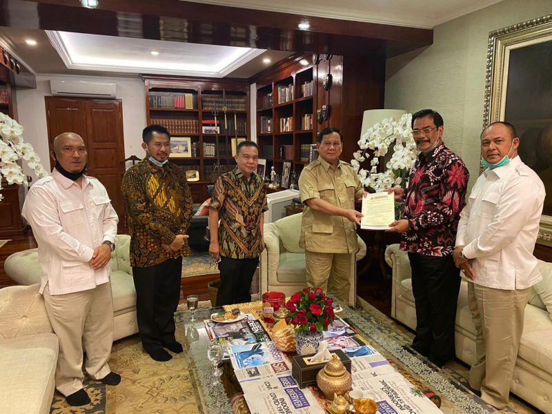 Penyerahan rekomendasi itu langsung diberikan oleh ketua umum partai Gerindra, Prabowo Subianto kepada Soeryo Respationo dan Iman Sutiawan di Jakarta, Senin (15/6).