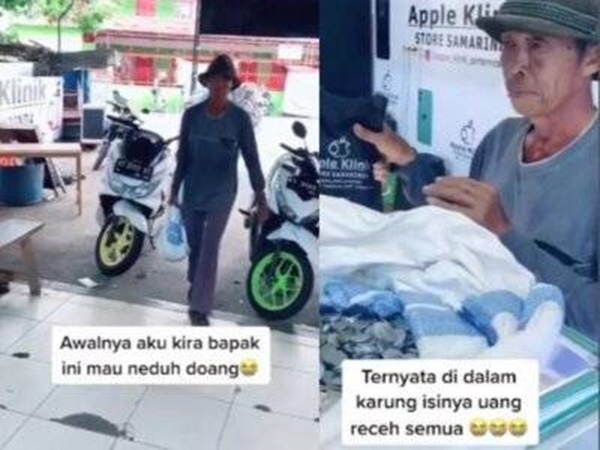 Yang membikin haru, saat pembayaran, bapak tersebut membayarnya dengan uang receh di dalam karung.