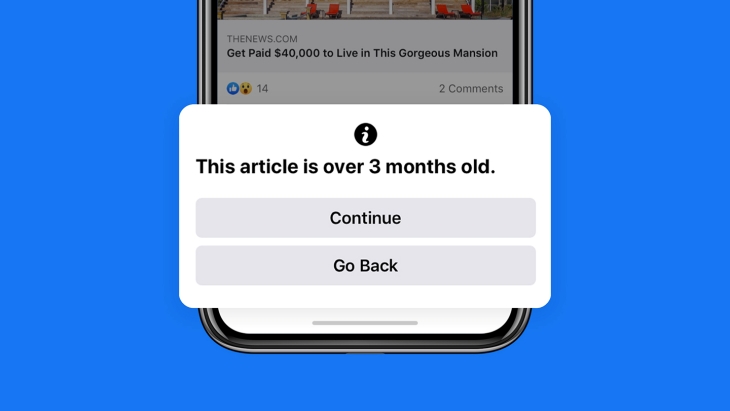 “Hari ini, kami mulai menggelar layar notifikasi secara global yang akan membuat orang tahu kapan artikel berita yang akan mereka bagikan berusia lebih dari 90 hari,” kata Wakil Presiden bidang Feeds dan Stories Facebook, John Hegeman.