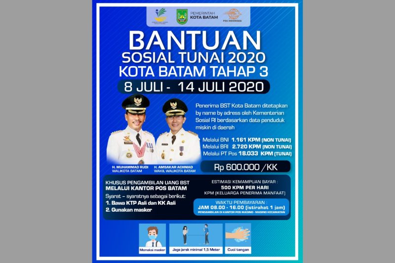 Batam, inikepri.com – Keluarga penerima manfaat (KPM) dapat mencairkan bantuan sosial tunai (BST) tahap III mulai Rabu (8/7).