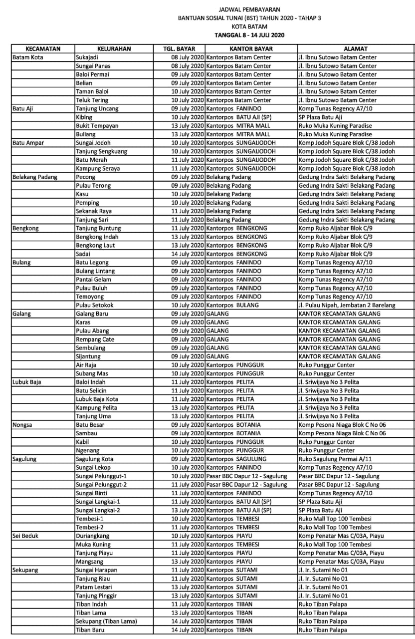 “Untuk KPM yang pencairannya melalui Kantor Pos, bisa langsung mendatangi kantor pos yang telah ditentukan pada waktu sesuai jadwal,” tutur Wakil Wali Kota Batam, Amsakar Achmad di Batam Centre, Rabu (8/7).