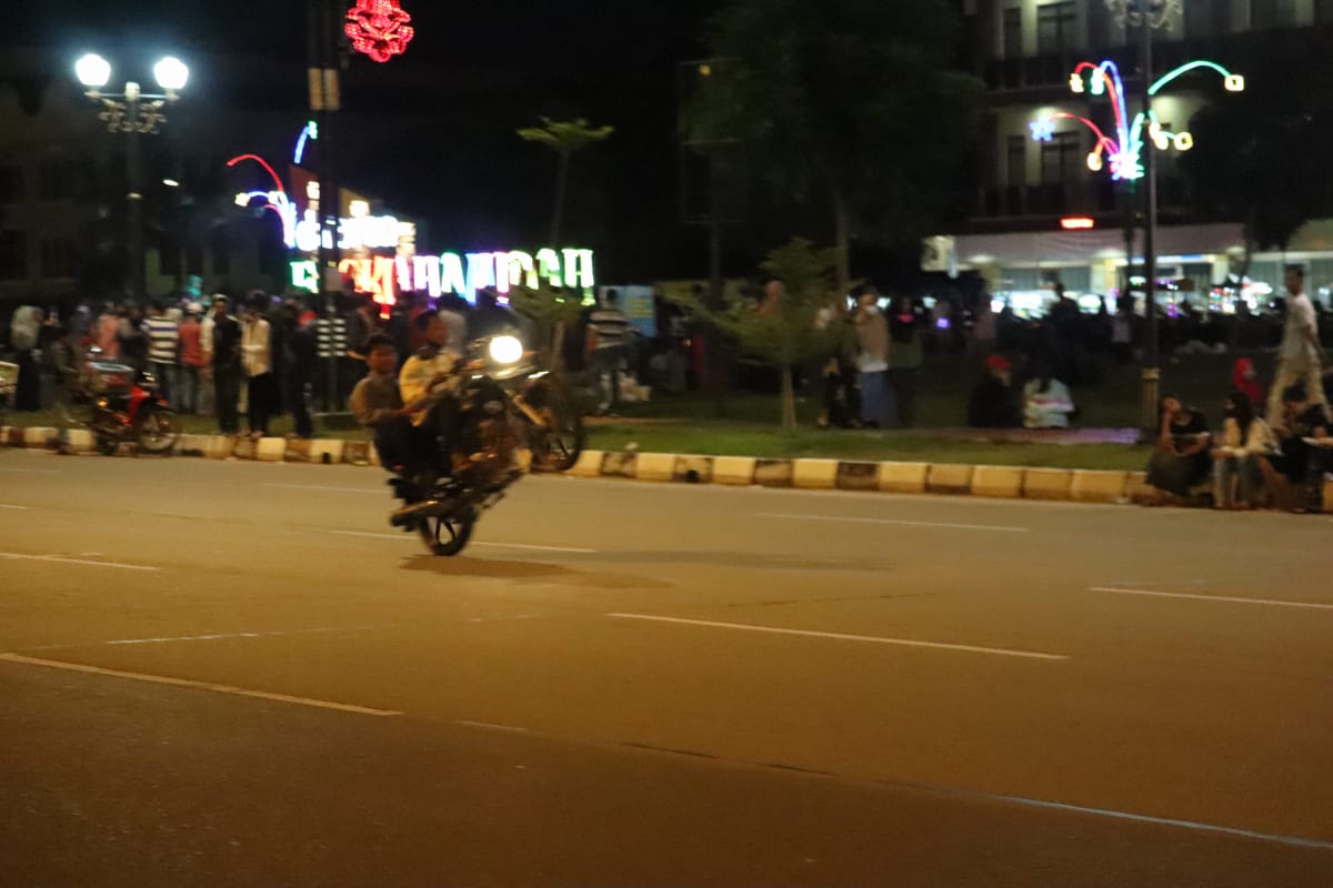 “Standing, gas…!,” teriak para penonton dipinggir jalan menyaksikan seorang remaja yang mengendarai sepeda motor tanpa menggunakan helem.