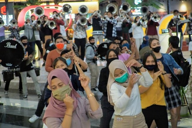 Kegiatan flash mob ini sengaja dilakukan di pusat perbelanjaan karena di kondisi Covid-19 dianggap lokasi yang aman untuk melaksanakan flash mob.