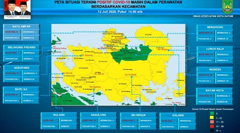 Secara visual, zona hijau ini dapat dilihat dalam peta zona penyebaran Covid-19 Kota Batam, yang dirilis Gugus Tugas Covid-19 Kota Batam, Minggu (12/7) pukul 14.00 WIB.