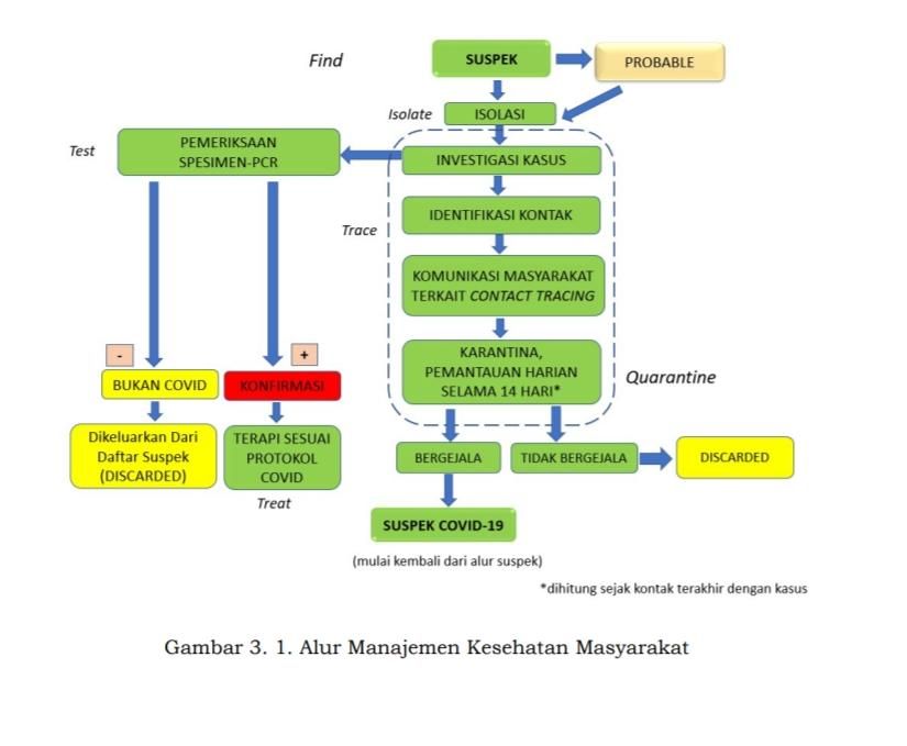 “Pada bagian ini, dijelaskan definisi operasional kasus COVID-19 yaitu kasus suspek, kasus probable, kasus konfirmasi, kontak erat, pelaku perjalanan, discarded, selesai isolasi, dan kematian. Untuk kasus suspek, kasus probable, kasus konfirmasi, kontak erat, istilah yang digunakan pada pedoman sebelumnya adalah Orang Dalam Pemantauan (ODP), Pasien Dalam Pengawasan (PDP), Orang Tanpa Gejala (OTG),” demikian tertulis dalam aturan tersebut.