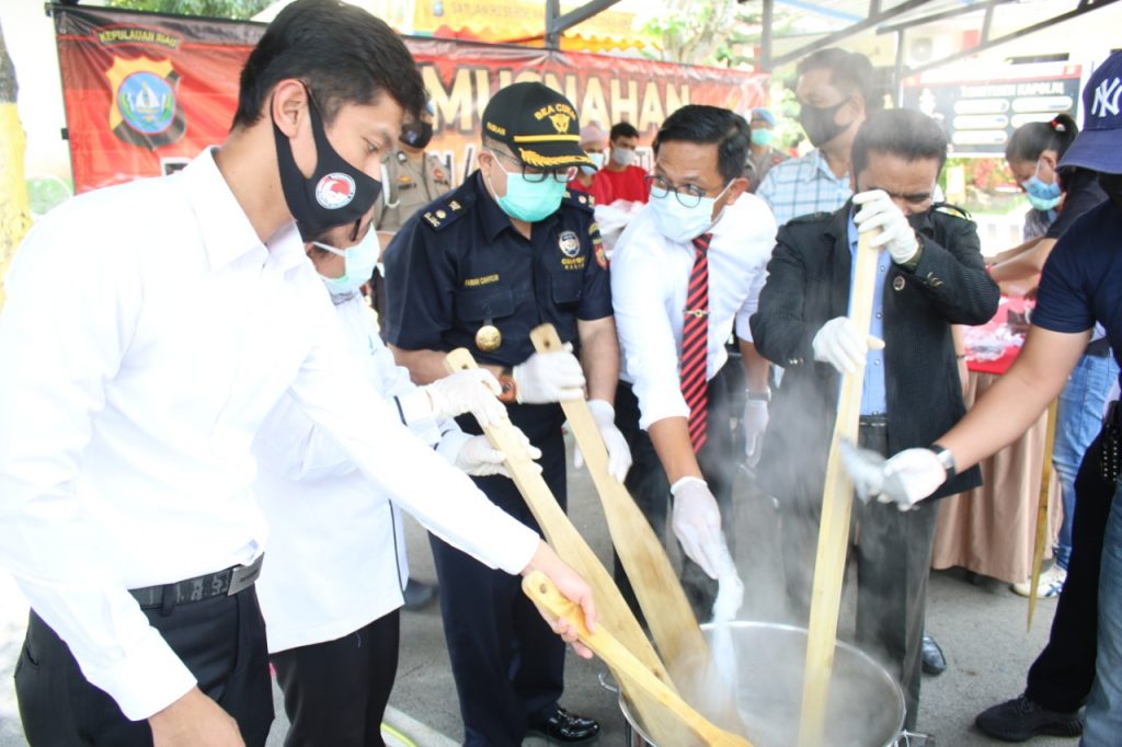 Pemusnahan barang bukti sabu dilakukan dengan cara memasukkan kedalam air yang sudah di panaskan dulu dengan menggunakan kompor gas alias direbus. Sejauh ini peredaran narkoba di Indonesia masih tetap saja berjalan dan salah satu tempat transit dan jalur peredaran narkoba di Indonesia adalah Kota Batam.