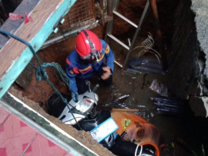 “Saat hujan deras, sepeda motor tertimpa toren air yang jatuh lalu terjadi longsor dan motor ikut terperosok ke tangki septik,” kata Kasi Operasional Damkar Jaktim Gatot Sulaeman di Jakarta dilansir ANTARA.