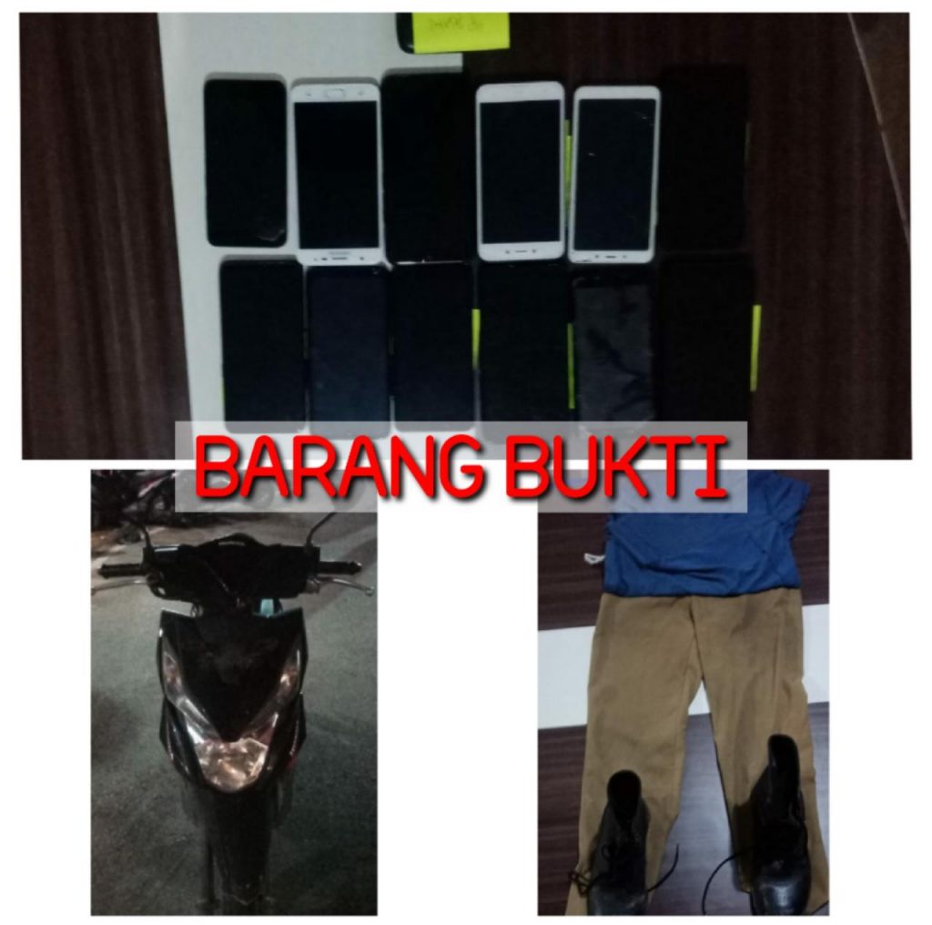 Dor! Akhirnya Warianto terpaksa dihadiahkan oleh Macan Barelang. Pelaku diamankan ke Polresta Barelang dengan sejumlah barang bukti berupa 14 (Empat Belas) Unit Handphone dengan merk yang berbeda, 1 (satu) Unit motorbeat (untuk transportasi), 1(satu) Buah Celana dinas PNS, 1(satu) sepasang sepatu PDL warna hitam.