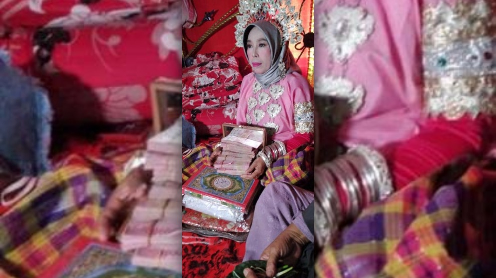 Calon pengantin perempuan itu juga sedang memegang uang panaik atau mahar.