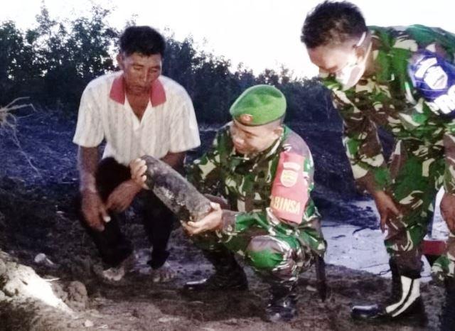 “Pada saat pak Kim Gu ini mencangkul tanah, cangkulnya mengenai benda keras. Setelah dia buka sepertinya memang proyektil,” kata Danramil 04/Tebing, Kapten CPL E.S Nasution.