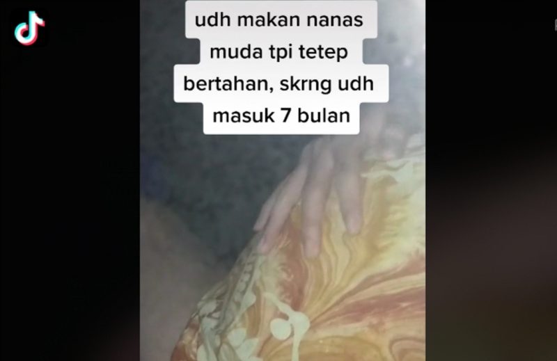 Bahkan ia sudah mencoba makan nanas muda namun janin yang dikandungnya tetap ada. Saat ini usia kandungannya sudah memasuki usia tujuh bulan.