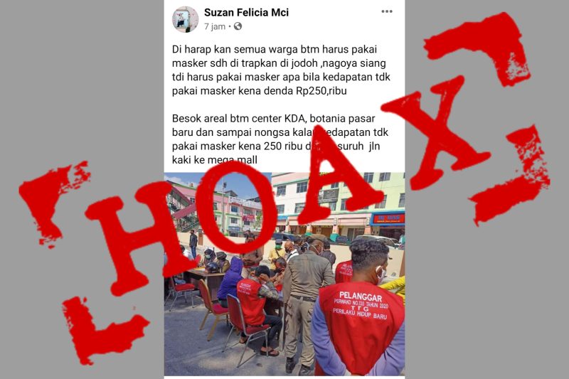 Postingan akun facebook Suzan Felicia MCI terkait akan adanya razia pada esok hari kepada warga Batam yang tidak mengenakan masker di beberapa titik di Kota Batam adalah tidak benar.