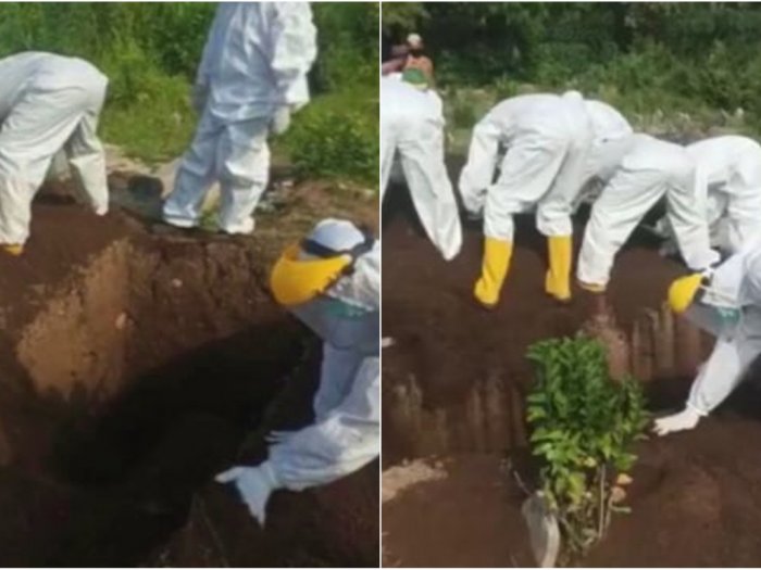 Pada video itu, terlihat sejumlah petugas Gugus Tugas Covid-19 bersusah payah menguburkan jenazah.