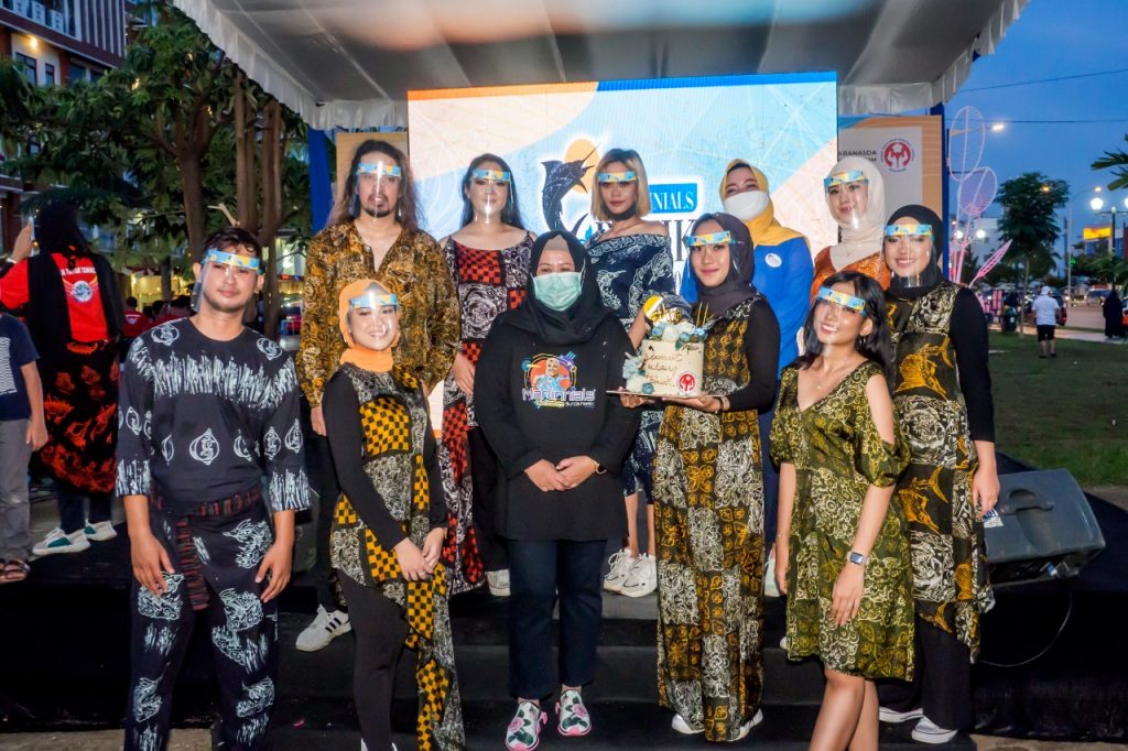 Batik Batam Milenial 2k20 ini digelar di Dataran Engku Hamidah, Sabtu (15/8) sore. Tak hanya tampil bersama Batam Tiktok Community, Marlin pun duet dengan solois milenial Batam, Iwan Setiawan.