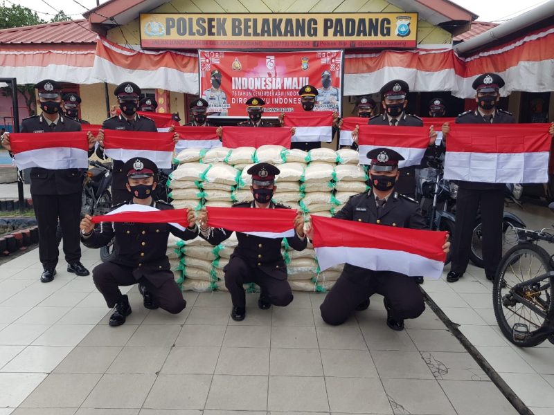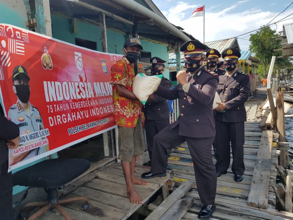 Batam, inikepri.com – Dalam rangka memperingati Hari Ulang Tahun (HUT) Republik Indonesia yang ke-75 tahun, Polsek Belakang Padang menggelar bakti sosial berupa pembagian beras di Mapolsek Belakang Padang, Senin (17/8).