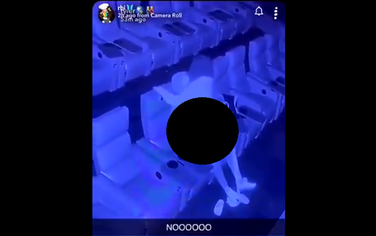 Dalam video tersebut tampak sejoli duduk di bangku bioskop paling depan. Suasana bioskop pun tampak sepi, tetapi terlihat pria tampak memangku sang kekasih lalu melancarkan aksi mesum.