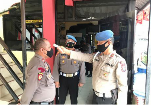 Inikepri.com, Tanjungpinang – Dalam rangka mencegah penyebaran Covid-19 dilingkungan Polres Tanjungpinang, Sie Propam Polres Tanjungpinang melaksanakan pendisiplinan penerapan protokol kesehatan bagi personel dan ASN di Lingkungan Polres Tanjungpinang, Rabu (26/08/2020)