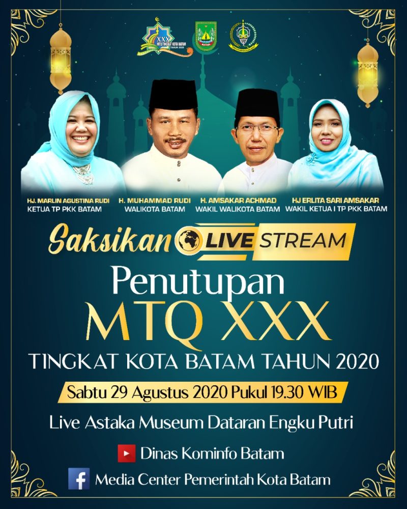 Batam, inikepri.com – Musabaqah Tilawatil Quran (MTQ) ke-30 tingkat Kota Batam resmi ditutup di Dataran Engku Putri, malam ini. Masyarakat bisa menyaksikan penutupan melalui siaran langsung di saluran YouTube dan Facebook.