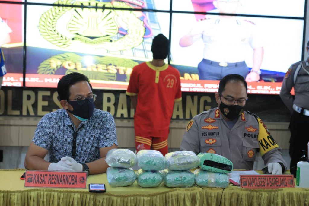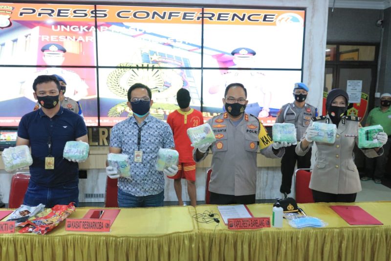 Batam, inikepri.com – Polresta Barelang menggelar konferensi pers terkait penangkapan narkotika jenis sabu seberat 11,5 kilogram, Selasa (10/8).