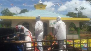 Randanu salah satu pemuda mengatakan, penyemprotan ini dilakukan seluruh wilayah Kampung Baru meliputi tempat ibadah, dan rumah-rumah.