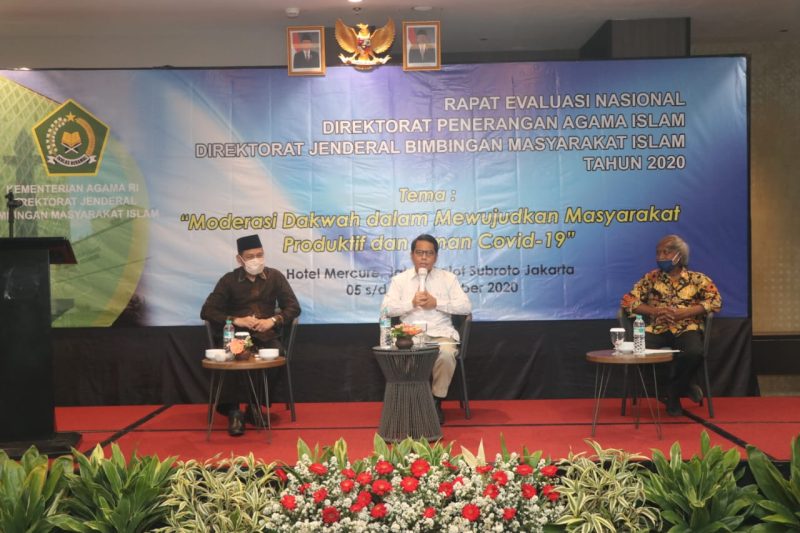 Kegiatan yang bertajuk Moderasi Dakwah dalam Mewujudkan Masyarakat Produktif dan Aman Covid-19 ini berlangsung selama tiga hari, 5-7 September 2020. Giat ini diikuti 132 peserta dari Kanwil Provinsi Se Indonesia, Pimpinan Ormas Islam/Majelis Ulama Indonesia (MUI) tingkat Provinsi, serta Pejabat dan Pelaksana di lingkungan Direktorat Penerangan Agama Islam Ditjen Bimas Islam.