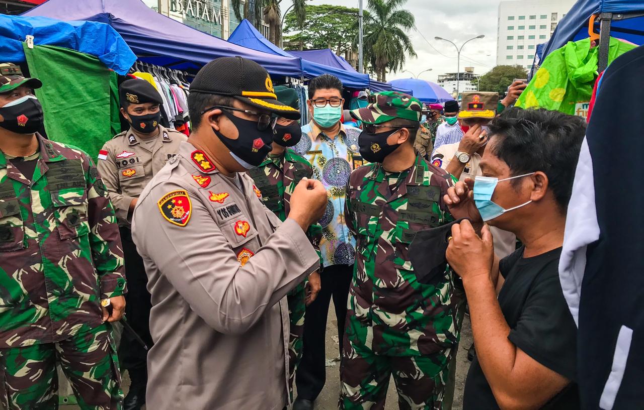 Kali ini, rombongan yang dipimpin Kapolresta Barelang, AKBP Yos Guntur, itu langsung menuju Pasar Toss 3000 dan menegur warga yang tidak menggunakan masker. Di kesempatan itu, rombongan juga membagikan masker. Yos mengingatkan, warga untuk disiplin menerapkan protokol kesehatan agar permaslahan Covid-19 ini segera berakhir.