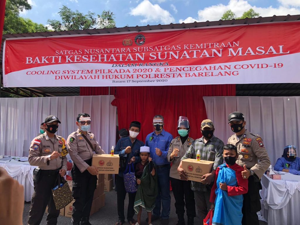 Batam, inikepri.com – Dalam rangka Cooling System Pilkada 2020 dan pencegahan Covid-19, Polresta Barelang melaksanakan kegiatan Satgasnusantara Subsatgas Kemitraan Bakti Sosial dan Bakti Kesehatan, Di Mako Polresta Barelang . Kamis (17/09/2020) pagi.