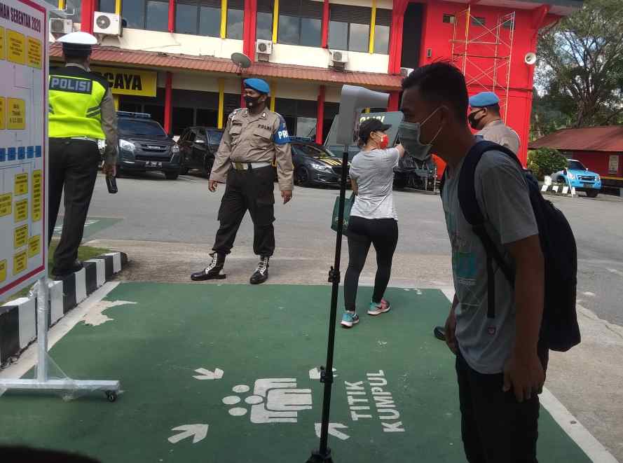 “Pengecekan suhu badan ini, tujuan ialah untuk mengetahui suhu badan para tamu undangan yang hadir dan juga untuk mencegah penyebaran wabah virus Corona,” ujar Kepala Satuan Samapta Bhayangkara (Kasat Sabhara) Polresta Barelang, Kompol Firdaus.