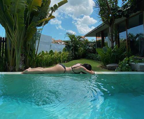 Bisa dilihat di sini kalau begitulah kolam renang di halaman belakang. Shafa terlihat berjemur di samping kolam renang yang terlihat sangat segar.