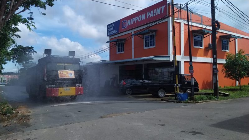 Batam, inikepri.com – Mengatasi penyebaran wabah Covid-19, personel Sub Satuan Tugas KBR (Kimia Biologi Radioaktif) Detasemen Gegana Brigade Mobile Kepolisian Daerah Kepulauan Riau (Brimob Polda Kepri) melakukan penyemprotan cairan disinfektan secara massal di tiga lokasi berbeda yakni Kota Batam, Bintan, dan Karimun, Selasa (22/9/2020).