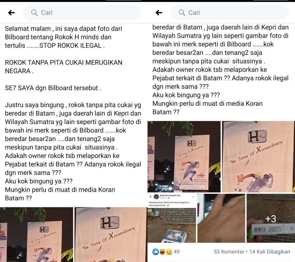 “Adakah owner rokok tsb melaporkan ke Pejabat terkait di Batam?? Adanya rokok ilegal dg merk sama ??? Aku kok bingung ya ??,” Tulis AY.