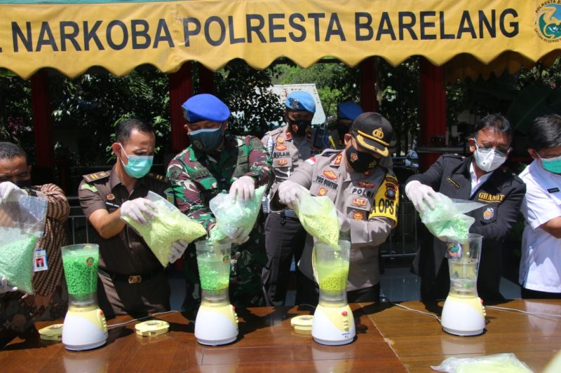 Dalam kegiatan yang berlangsung di Gedung Satresnarkoba Polresta Barelang, Kamis (24/09/2020) sekitar Pukul 10.00 WIB ini, juga dilakukan pemusnahan barang bukti berupa 56,8 Kilogram jenis Sabu, 327 Gram Ganja, dan 39.549 Butir Narkotika Pil Ekstasi.