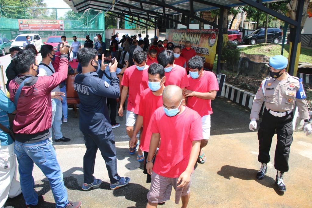 Batam, inikepri.com – Polresta Barelang menggelar konferensi pers penangkapan 15 tersangka Narkoba hasil pengungkapan kasus gabungan dari TNI, Polri dan BNN, dari bulan Juli hingga September 2020.