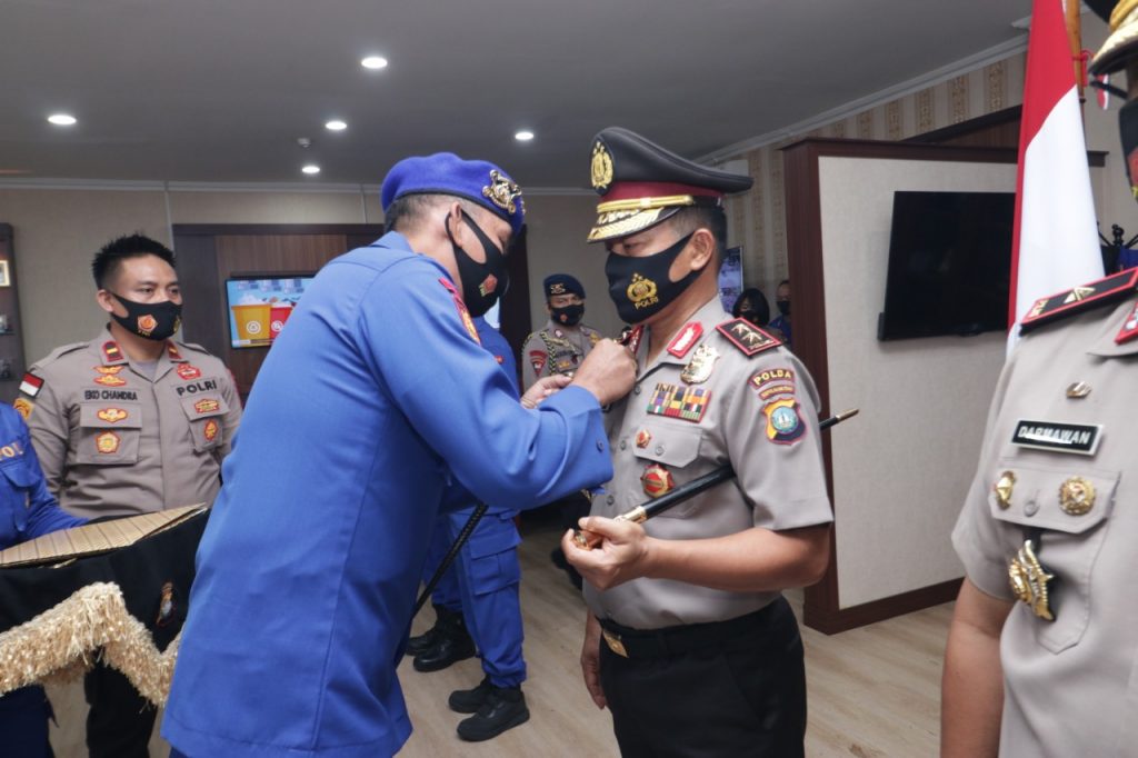 Batam, inikepri.com – Kapolda Kepri Irjen Pol. Dr. Aris Budiman, M.Si., disematkan Brevet Bhayangkara Bahari Utama Kehormatan oleh Kakorpolairud Baharkam Polri Irjen Pol Drs. Verdianto I. Bitticaca. M. Hum. Hadir dalam kegiatan tersebut Dirpolair Korpolairud Brigjen Pol M. Yassin Kosasih, S.I.K., M. Si., Wakapolda Kepri, dan Pejabat Utama Polda, Jumat (25/9/20).