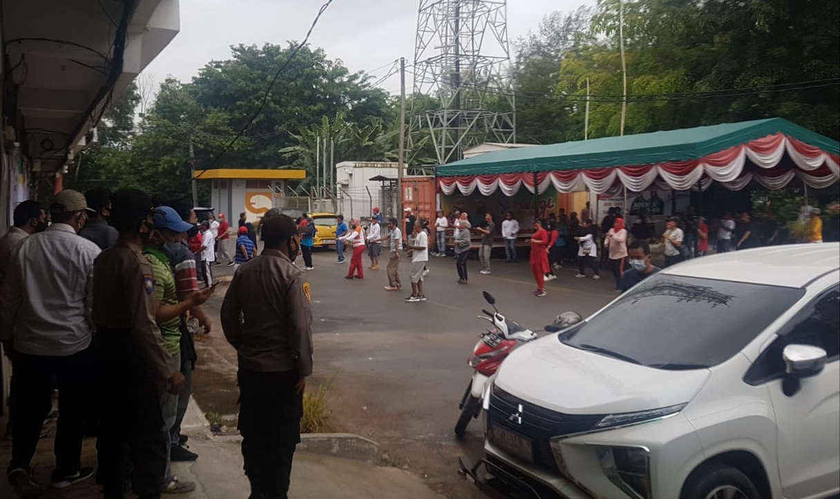 Batam, inikepri.com – Kepala Kepolisian Sektor (Kapolsek) Sekupang AKP Yudi Arvian, SH, SIK bersama gabungan personil Polresta Barelang dan Polsek Sekupang melaksanakan pengamanan senam bersama Pasangan Calon (Paslon) Walikota Batam nomor urut 01, di Perumahan Tiban Mas, Kecamatan Sekupang, Kota Batam, Minggu (27/9/2020) sekira pukul 07.30 WIB.