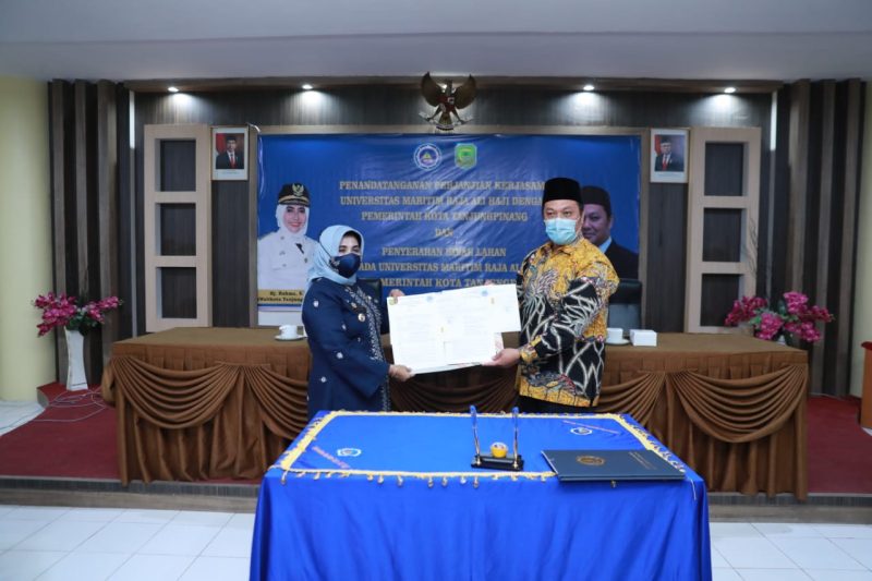 Penyerahan lahan hibah yang berada di Kelurahan Senggarang itu, ditandai penandatanganan Nota Kesepahaman antara Wali Kota Tanjungpinang Rahma dengan Rektor Umrah Tanjungpinang, Agung Dhamar Syakti, di Kampus Umrah Tanjungpinang, Rabu (30/9/2020).