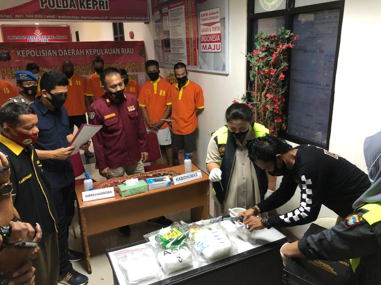 Jumlah Barang bukti yang berhasil disita dari 8 (delapan) orang tersangka tersebut adalah 2.663,68 (dua ribu enam ratus enam puluh tiga koma enam puluh delapan) gram. Dari barang bukti sejumlah 2.663,68 (dua ribu enam ratus enam puluh tiga koma enam puluh delapan) gram yang dilakukan pemusnahan adalah sebanyak 2.559,68 (dua ribu lima ratus lima puluh Sembilan koma enam puluh delapan) gram, sedangkan sisanya sebanyak 104 (seratus empat) gram diperuntukan untuk pembuktian perkara di Pengadilan dan uji Labfor cabang Polda Riau.