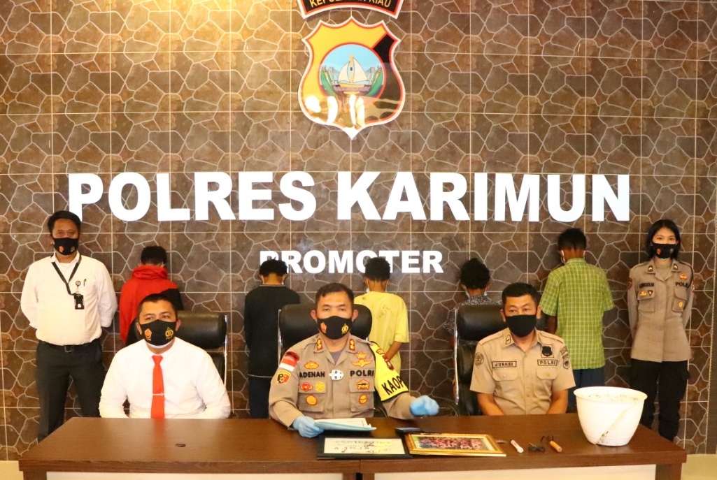Karimun, inikepri.com – Kepolisian Resor (Polres) Karimun Polda Kepri berhasil mengungkap dan mengamankan lima orang remaja yang masih berusia dibawah umur, atas kasus pencurian dan pengrusakan fasilitas di Sekolah Menengah Pertama (SMP) Negeri 2 dan Sekolah Menengah Atas (SMA) Negeri 1 Karimun.