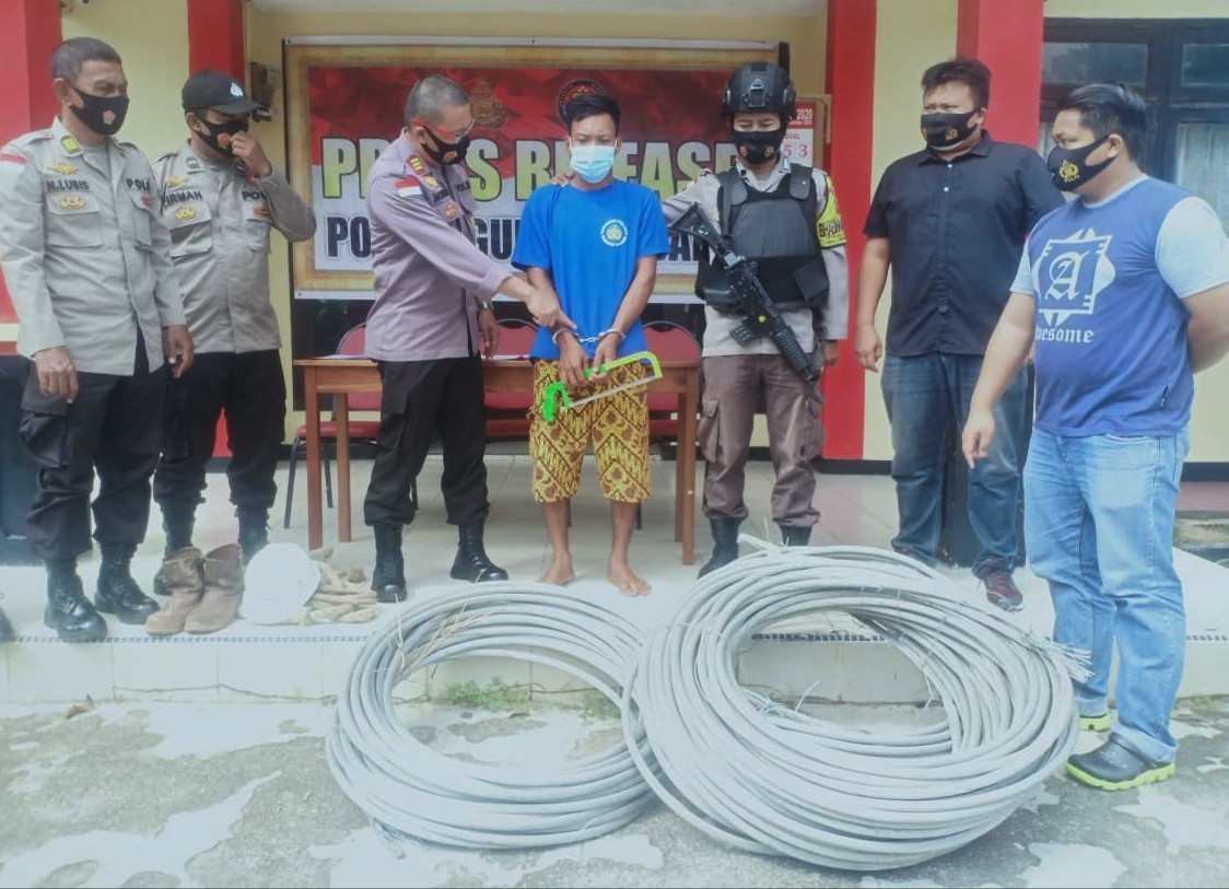 Kepala Kepolisian Sektor (Kapolsek) Gunung Kijang, AKP Monang P Silalahi S.H didampingi Kepala Sub Bagian Hubungan Masyarakat (Kasubbag Humas) Kepolisian Resor (Polres) Bintan, AKP Nurmansyah Lubis dan Kepala Unit Reserse Kriminal (Kanit Reskrim) Polsek Gunung Kijang, Iptu Nyoman A Mahendra S.tr.K mengatakan bahwa, penangkapan tersebut merupakan tindak lanjut adanya laporan dari pihak PLN Kijang Kabupaten Bintan, yang melaporkan kejadian kehilangan kabel listrik jenis A3C ukuran 240 mm dilokasi tiang listrik PLN jalan Lintas Barat Km 18 Kelurahan Toapaya Asri.