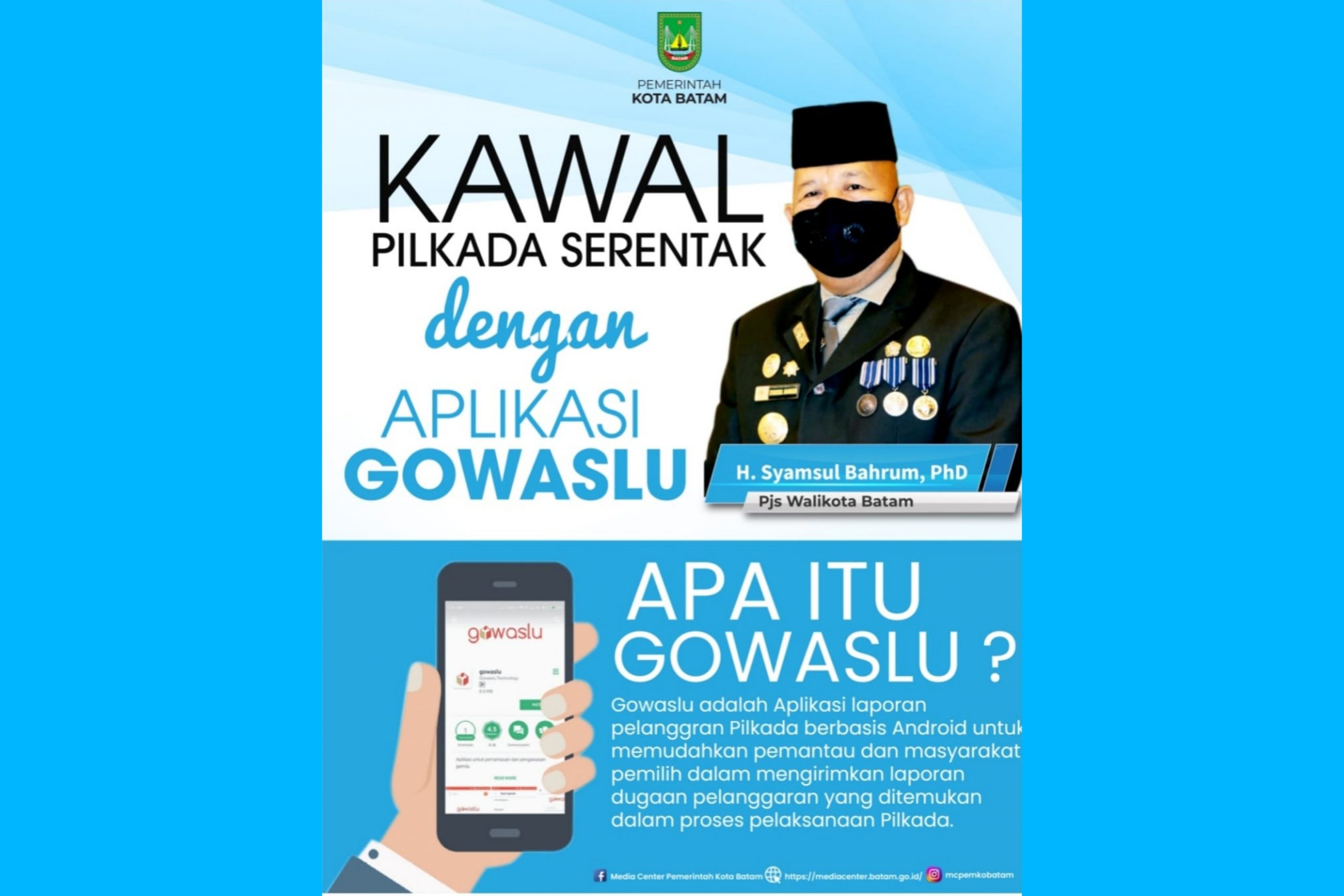 Batam, inikepri.com – Pemerintah Kota (Pemko) Batam mendorong keterlibatan masyarakat ikut mengawasi Pemilihan Kepala Daerah (Pilkada) serentak 2020. Penjabat sementara (Pjs) Wali Kota Batam Syamsul Bahrum, P.hD menyebutkan partisipasi masyarakat salah satunya dapat melalui aplikasi Gowaslu yang dapat diunduh di Playstore.